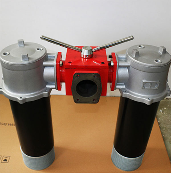 本過(guò)濾器適用于需要連續(xù)工作,不允許停機(jī)清洗濾芯情況下的液壓系統(tǒng)回油管路精過(guò)濾,用以濾除系統(tǒng)中的機(jī)械和化學(xué)雜質(zhì),使流回油箱的油液保持清潔。過(guò)濾器由一只二位六通換向閥和二只回油管路過(guò)濾器組成。其主要性能特點(diǎn)有: 1.當(dāng)工作的一只過(guò)濾器濾芯堵塞,其進(jìn)出口壓差達(dá)到0.35MPa時(shí),發(fā)訊器便會(huì)發(fā)出訊號(hào),這時(shí)須及時(shí)打開(kāi)換向閥上的平衡閥,并轉(zhuǎn)動(dòng)換向閥,關(guān)閉濾芯已堵塞的過(guò)濾器的油路,并關(guān)閉平衡閥,使備用過(guò)濾器進(jìn)入工作狀態(tài),保持系統(tǒng)的連接運(yùn)行。然后更換已堵塞的濾芯。 2.當(dāng)濾芯堵塞,發(fā)訊器報(bào)警后無(wú)人處理故障,進(jìn)出油口壓差升至O.40MPa時(shí),安裝在濾芯上部的旁通閥便自行開(kāi)啟,另開(kāi)油路,避免過(guò)濾囂損壞,確保系統(tǒng)照常運(yùn)行。 3.濾芯采用紙質(zhì),化纖,網(wǎng)式和線隙式濾材,適應(yīng)系統(tǒng)對(duì)過(guò)濾器的不同需求。